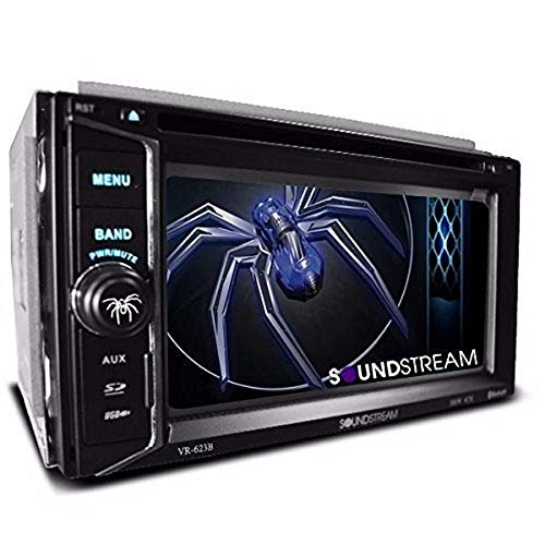Soundstream VR-623B Built-in Bluetooth 6.2 Inch Touchscreen High Resolution TFT LCD Car CD DVD MP3 Receiver Hands Free Calls Audio Streaming USB AUX SD Card Inputs LED RGB Colors AM/FM Radio Stereo