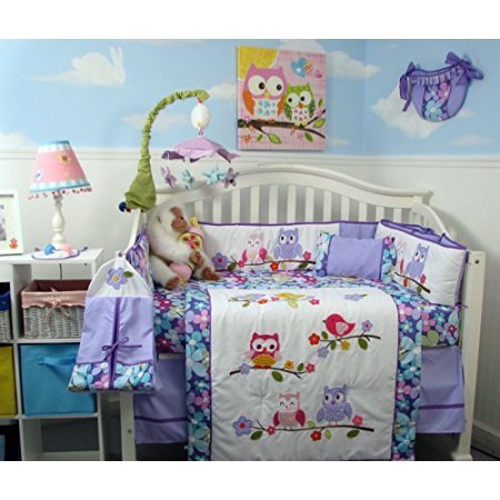 SoHo Baby Crib Nursery Bedding 10Pc Set, Lavender Owls