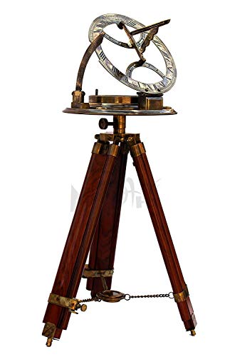 MAH- 8''Antique Srtyle Tripod Sundial Compass Brass -Nautical Compass Master Stand (Antique Finish- Beautiful Home Decor. C-3183 C
