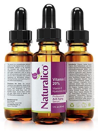 Naturalico Anti Aging Organic 20% Vitamin C Serum for Face with Hyaluronic Acid 1 Oz