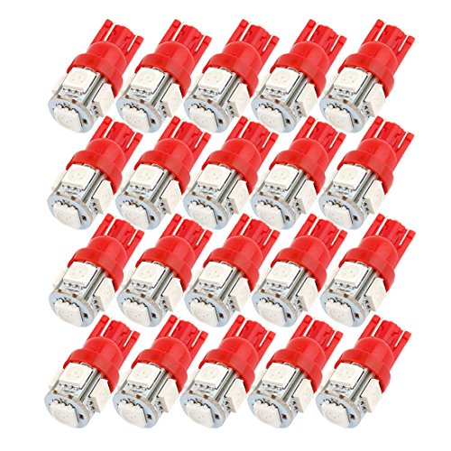 uxcell 20 Pcs W5W T10 5-SMD Red 5050 Chip LED Car Bulb