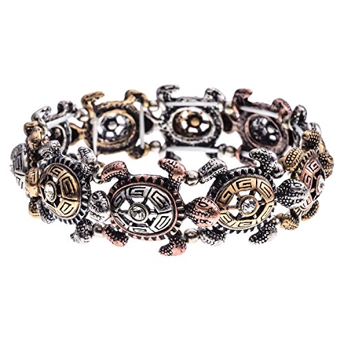 PammyJ Sea Turtle Bracelet - Two-Tone and Crystal Stretch Bracelet