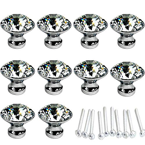HOSL 10PCS Diamond Shape Crystal Glass Cabinet Knob Cupboard Drawer Pull Handle/Great for Cupboard, Kitchen and Bathroom Cabinets, Shutters, etc (30MM)