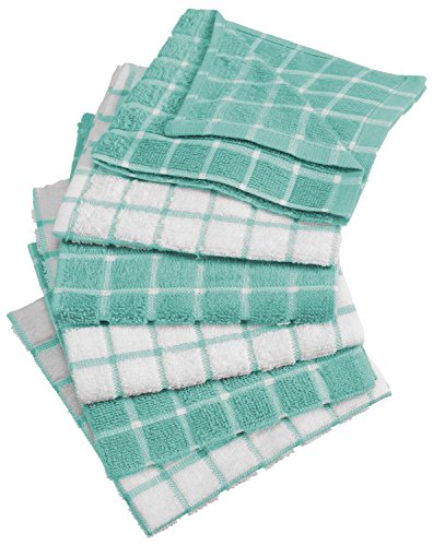 DII 100% Cotton, Machine Washable, Ultra Absorbant, Basic Everyday 12 x 12" Terry Kitchen Dish Cloths, Windowpane Design, Set of 6- Aqua