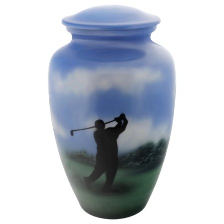 Silverlight Urns Golf Cremation Urn for Ashes, Funeral Urn Honors Golfer, Adult Size, 10 Inches High, Aluminum Metal Urn