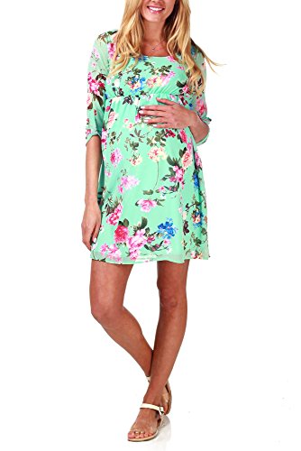 PinkBlush Maternity Mint Green Floral Chiffon Maternity Dress, Small