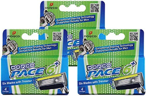 Dorco Pace 6 Plus- Six Blade Razor System with Trimmer- 12 Pack Refill (No Handle)