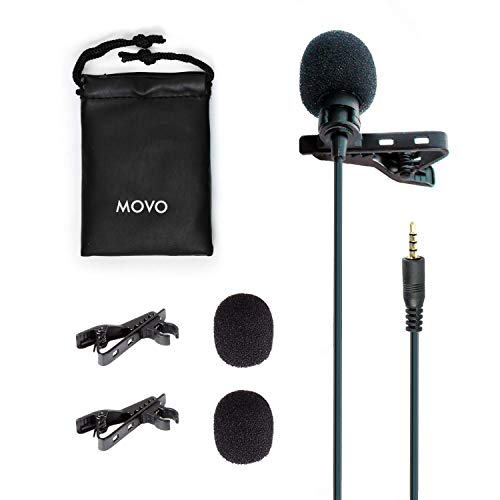 Movo PM10 Professional Lavalier Lapel Clip-on Omnidirectional Microphone for iOS iPhone, iPad, iPod Touch and Android Samsung Smartphone/Tablet for Recording Podcast, Vlog, Interview, YouTube, ASMR