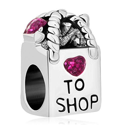 Pugster Antique Shopping Bag Heart Love To Shop Purple Birthstone Crystal Charm Beads Fit Pandora Bracelet