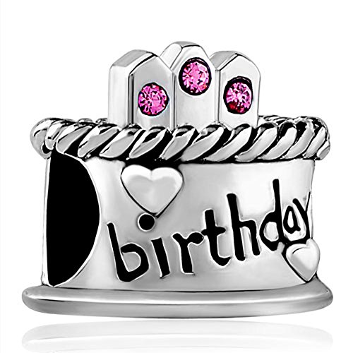 Pugster Happy Birthday Cake Crystal Birthstone Charms Bead Fits Pandora Charm Bracelets