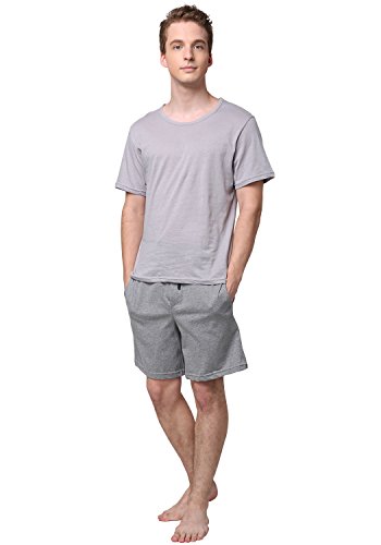 Godsen Men's Casual Wear Cotton Short Pajama Set Tshirt and Pants (S, GrayA)