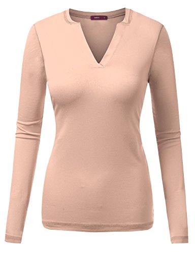 Doublju Stretch Slim Fit Deep V-Neck T-Shirt Top (Plus size available)SAND X-LARGE