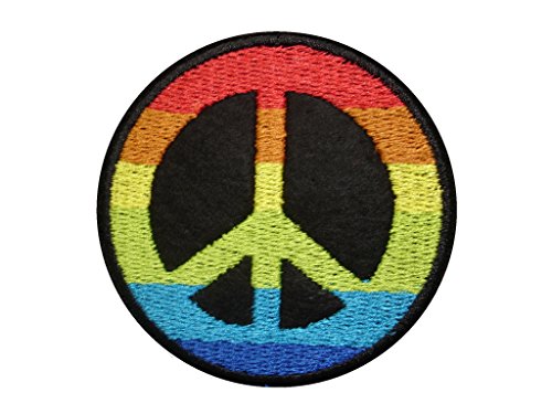 PEACE SYMBOL Iron On Patch * Lot of 2 pieces * Applique Motif Biker Symbol Decal dia 2.5 inches (6.3 cm)