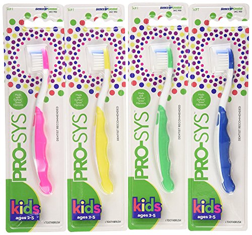 PRO-SYS® Kids Toothbrush (Colorful 4-Pack) - Made with Soft Dupont® bristles (Ages 2-5 for Toddlers and Young Children)