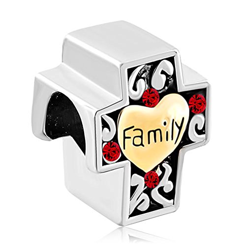 Pugster Red Swarovski Element Crystal Filigree Heart Love Family Cross Bead Fits Pandora Charms Bracelet