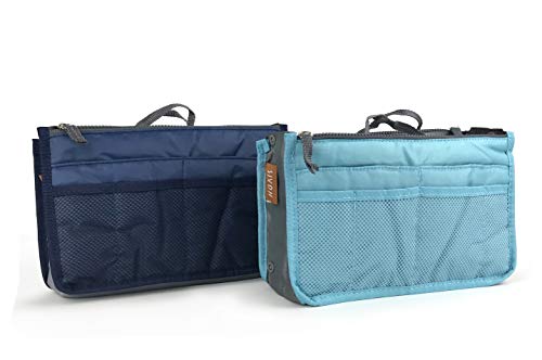Multifunction Handbag Organizers Insert Pack of 2 Bag In Bag Cosmetic Travel Toiletry Makeup Shaving Dopp Kit Bag(Dark Blue& Blue)