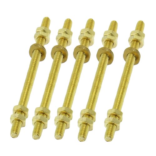 Uxcell Brass Hex Nuts Double Headed Bolt Rod, 6mm x 100mm, 5-Piece