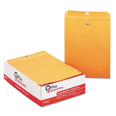 Office Impressions - Clasp Envelopes, 10 x 13, Brown Kraft - 100 Count