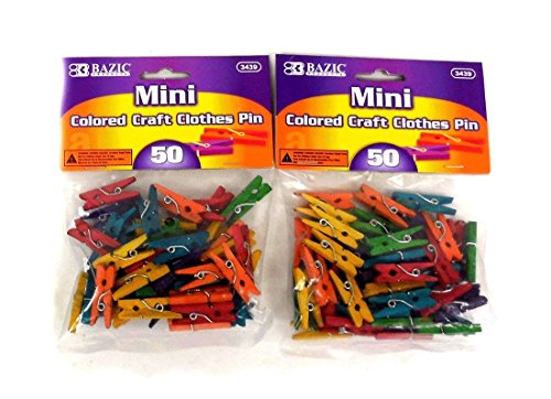 BAZIC Mini Colored Clothespin, 50 Per Pack, total 100