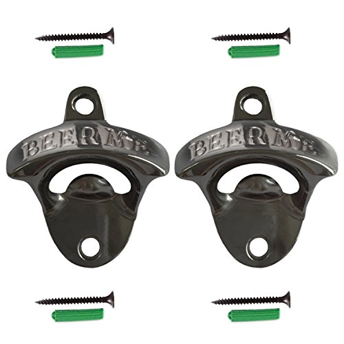 Wall Mount"Beer Me" Bottle Opener (2 Pack) – Includes Mounting Screws – Very Solid – Black Nickel Plated – Anti-Rust Protection – Retail Packaging – Great Gift Choice (Black)
