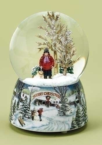 Roman Merry Xmas Snowy Woodland Scene Music Snow Globe Glitterdome Plays O Xmas Tree