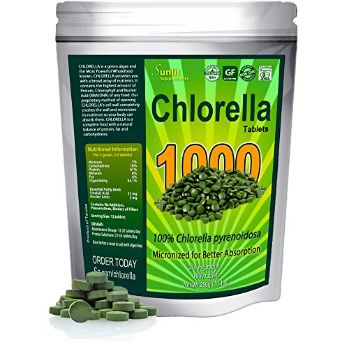 Chlorella Tablets (Mega-pack 1000 tablets). Organic, raw, non-GMO. 100% Pure Chlorella Pyrensoidosa. Green Superfood Supplement. High protein, chlorophyll & nucleic acids. No preservatives or fillers