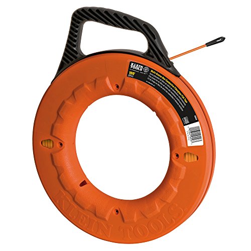 Klein Tools 56058 Fish Tape 100-Foot is Grooved Non-Conductive Fiberglass, Flexible, Pull Line to 500-Pound