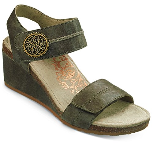 Aetrex Women's Arielle Quarter Strap Wedge Sandal, Black, 39 BR/8.5 M US