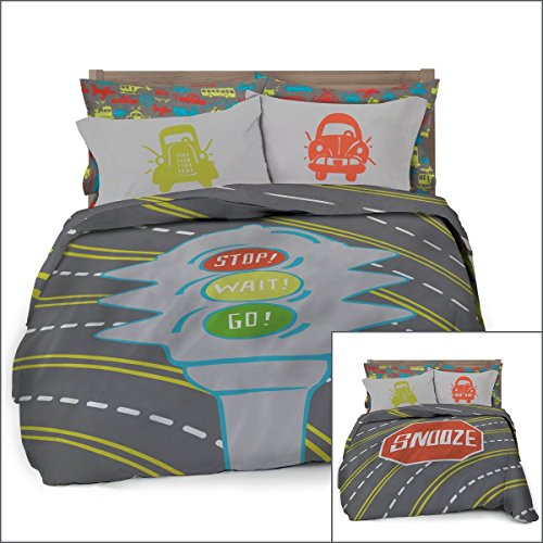 Where The Polka Dots Roam Full/Queen Transportation Duvet Cover Set with 2 Pillowcases for Kids Bedding - Double Brushed Ultra Microfiber Luxury Set (L 90in x W 92in)