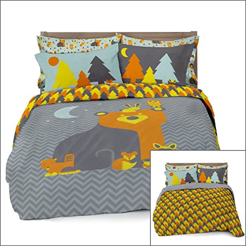 Where The Polka Dots Roam Full/Queen Woodland Creatures Duvet Cover Set 2 Pillowcases Kids Bedding - Double Brushed Ultra Microfiber Luxury Set (L 90in x W 92in)