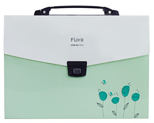 Shuter Accordion Expanding File Folder, 13-Pockets, A4 Size, Handle and Tabs, Buckle Closure (Green)