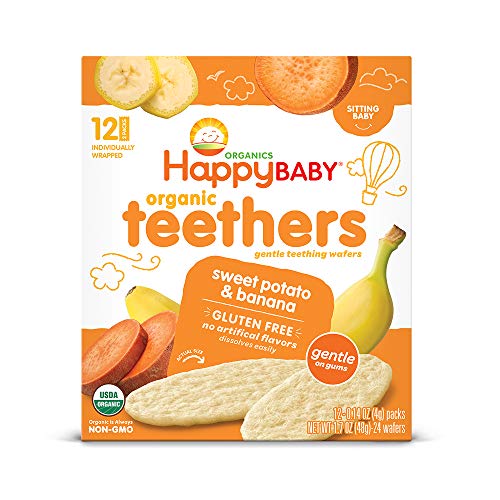Happy Baby Gentle Teethers Organic Teething Wafers Banana Sweet Potato, 12 Count Box (Pack of 6) Soothing Rice Cookies for Teething Babies Dissolves Easily, Gluten-Free (Packaging May Vary)