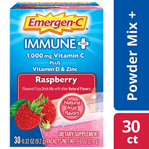 Emergen-C Immune+ (30 Count, Raspberry Flavor) System Support Dietary Supplement Fizzy Drink Mix With Vitamin D, 1000mg Vitamin C plus Antioxidants & Electrolytes, 0.32 Ounce Packets