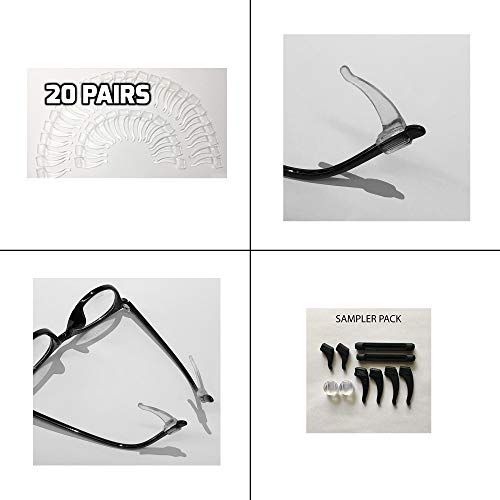 20 PAIRS Keepons Superior Clear Prevent Eyeglass Slipping Anti Slip Anti Slide Eyewear Sunglasses Spectacles Glasses Temple Tips Sports Ear Hooks Sleeves Retainer + assorted 5 PAIR Sampler Pack