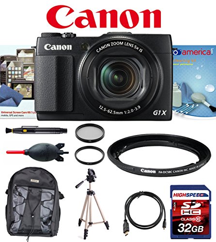 Canon G1X Mark II w/ Canon FA-DC58C 58mm Filter Adapter, 32GB Deluxe Kit