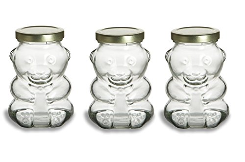Nakpunar 3 pcs, 9 oz Glass Bear Jars with Gold Lids Lids for Honey, Candies, Piggy Banks
