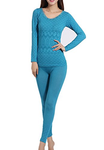 LANBAOSI Women's Lace Stretch Seamless Top & Bottom Thermal Underwear Set