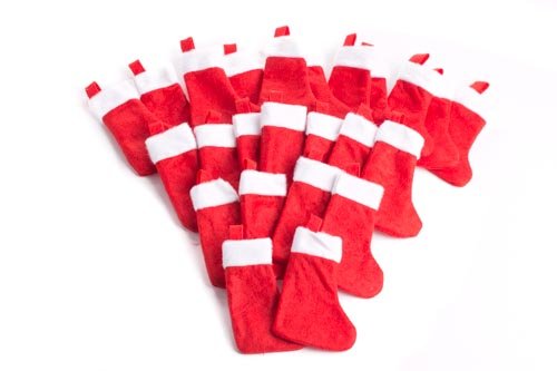 Group of 24 Mini Red & White Felt Holiday Stockings