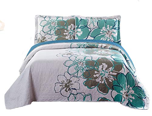 Fancy Collection 3 Pc Bedspread Bed Cover White Grey Green Floral (King)