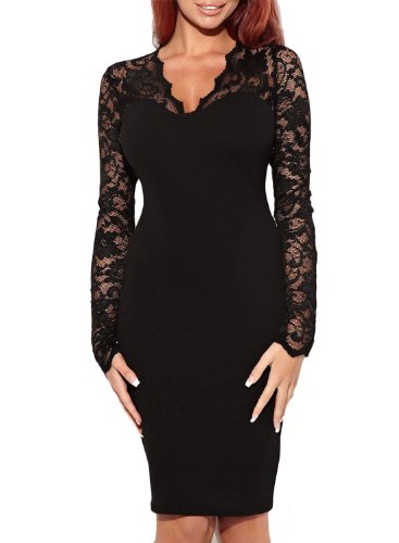 Miusol Women's Vintage Floral Lace Long Sleeves Bridesmaid Midi Dress