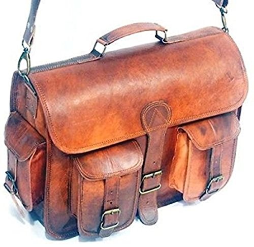HLC Vintage Genuine Leather Laptop Briefcase messenger satchel bag
