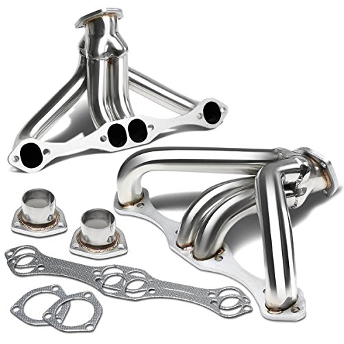 For Chevy Small Block Hugger 2x4-1 Tight Fit Design Stainless Steel Exhaust Header Kit (Polished Chrome) Angle Head
