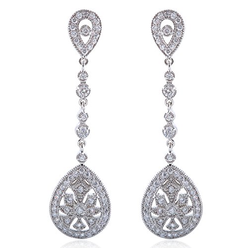 EVER FAITH Bridal Art Deco Classical Gatsby Inspired Pave Cubic Zirconia Chandelier Earrings