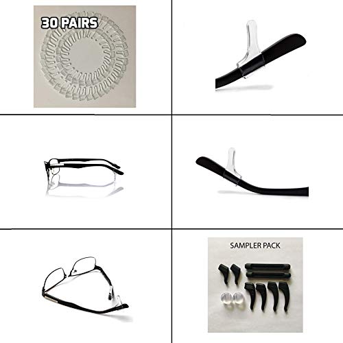 30 PAIRS Keepons Lite Clear Prevent Eyeglass Slipping Anti Slip Anti Slide Eyewear Sunglasses Spectacles Glasses Temple Tips Sports Ear Hooks Sleeves Retainer + assorted 5 PAIR Sampler Pack