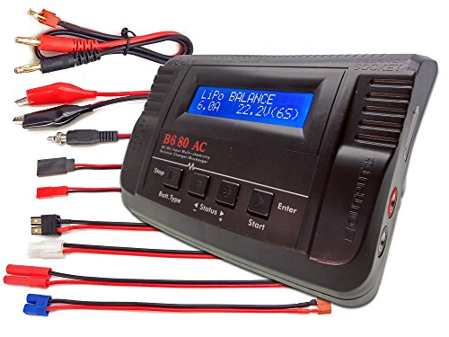 B680AC CAR Dual Power (6Amps, 80Watts): LiPo, LiIon, LiFe, NiCd, NiMh AC/DC Balancing Battery Charger w/ Deans T-Plug, Traxxas High Current, Tamiya/Kyosho/Molex, HXT4.0mm Bullet Redcat, EC3/EC-3 Plugs