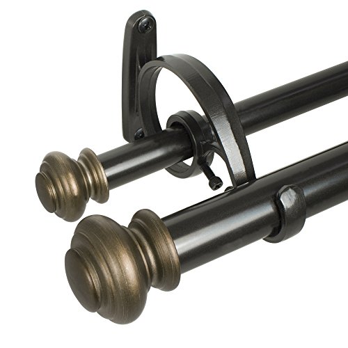Decopolitan Beme International Urn Telescoping Double Drapery Rod Set, 36-72-Inch, Brown