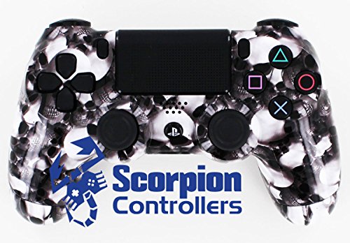 Playstation 4 Modded Controller White Skull 220+ Mods, Rapid, Trigger, Bust Rapid Fire, Akimbo,Jitter, Drop Shot, Jump Shot, Fast Reload,Quick Scope,Sniper Auto Breath Hold, Zombie Auto Aim, Auto Spot Turbo Melee, Selectable Button Layouts Scorpion Contro