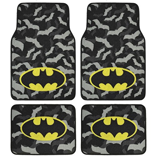 BDK WBMT2301 Black/Gray Batman Carpet Floor Mats 4 Piece Set - New Design Version Offical Licensed Product