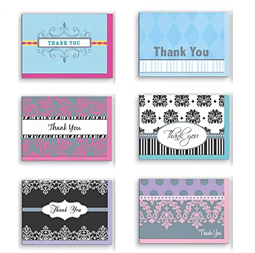 Assorted Thank You Appreciation Cards Bulk Blank Note Cards Set 48 Pack Assortment & 6 Designs, Baby Shower, Wedding, Bridal Shower, Condolence