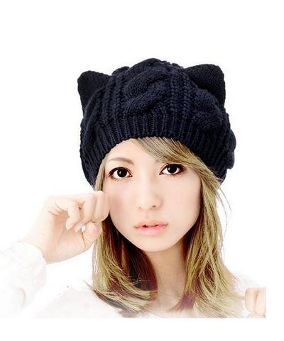 Vktech® Winter Fashion Knit Cat Ear Twist Cap Hat Orecchiette Devil Horn Beanie Hat (Black)